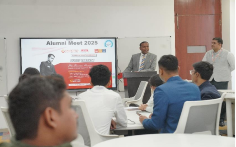 On Wednesday, 19th November 2025, the School of Hospitality and Tourism (SOHT), Galgotias University, successfully organized an Alumni Interaction Session featuring Mr. Raman Kumar, an alumnus of Galgotias University and currently working as a Food & Beverage Supervisor at The Oberoi, Gurgaon. The session began at 11:00 AM and witnessed active participation from students across various hospitality programs.