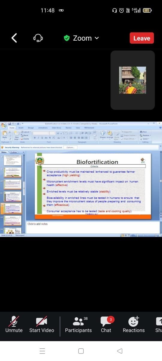 5 Day Faculty Development Programme on Innovative Research on Millets for Food and Nutritional Security to commemorate International Year of Millets