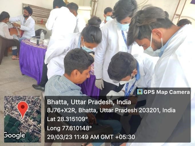 Event Description: A blood test camp is an organized event or program where individuals can undergo various blood tests for health assessment purposes. Blood test is the social responsibility of a MLT who is well qualified and professionally trained to provide Primary facilities to society. Students are very enthusiastic about this activity. They get practical exposure to real life situations of work. Villagers of Bhatta village were excited to get our services and Gram Pradhan himself monitored all the activities at the camp. We are happy and get motivated to see their response. Blood test camps play a valuable role in promoting preventive healthcare by making essential diagnostic services more accessible to communities. They can help identify health issues at an early stage, allowing for timely intervention and improved health outcomes.