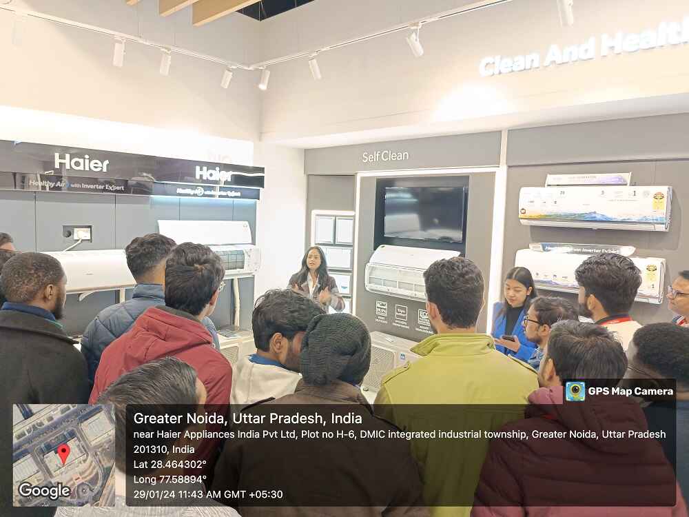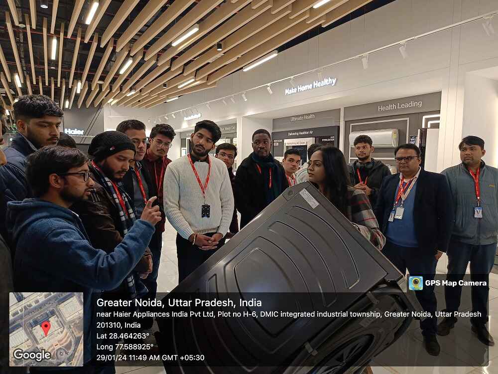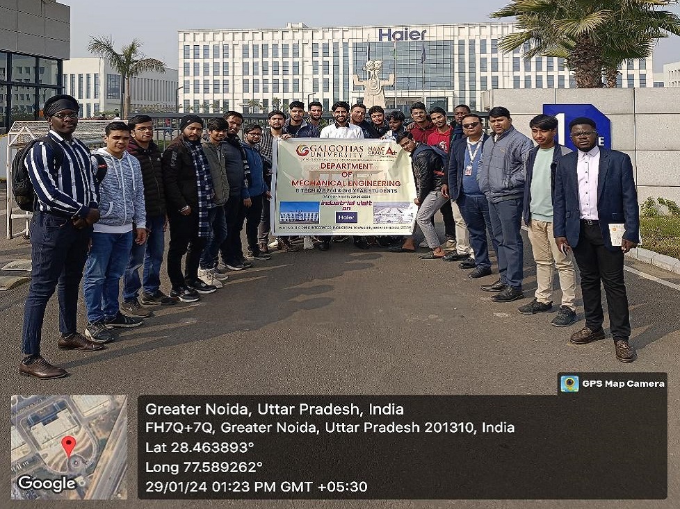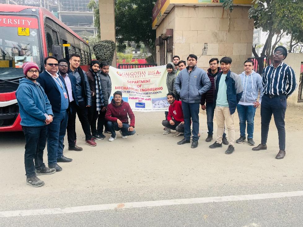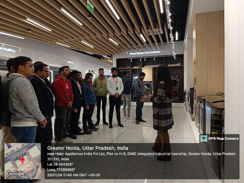Event Content-On January 29, 2023, the Department of Mechanical Engineering organised an industry visit for the 2nd and 3rd year B. Tech students to Haier India Appliances Pvt. Ltd in Greater Noida. Renowned for its expertise in consumer durables manufacturing, Haier offers a diverse range of products, including Refrigerators, Air Conditioners, Washing Machines, Wine Cellars, Deep Freezers, Water Heaters, LED TVs, and commercial Air Conditioners. As the world's no.1 brand in Refrigeration appliances, Home Laundry appliances, Freezer, and Wine Chillers, Haier is celebrated for its ground breaking products such as Bottom Mounted (BMR) and French door Refrigerators, Washing Machines with innovations like Self Clean Technology (SCT) and Near Zero Pressure (NZP), and Water Heaters with shockproof technology.