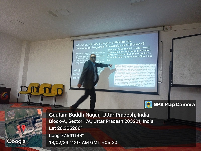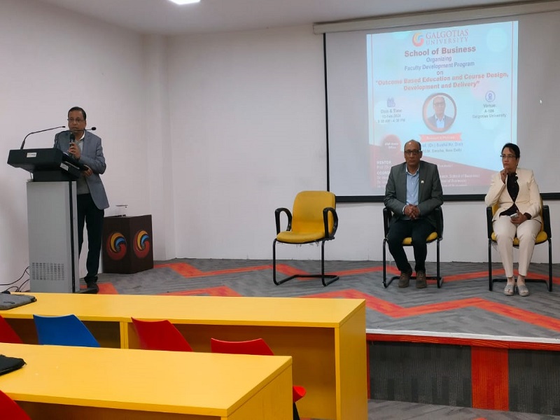 The Faculty Development Program (FDP) on Outcome Based Education (OBE) and Course Design, Development, and Delivery held at Galgotias University's School of Business was a significant endeavour aimed at enhancing the pedagogical capabilities and academic standards of the faculty members. The program saw the participation of esteemed dignitaries including Prof. Seema Gupta, Dean of the School of Business, Prof. Anamika Pandey, Associate Dean, Prof. Sushil Dixit (Resource Person), and other distinguished faculty members of School of Business.