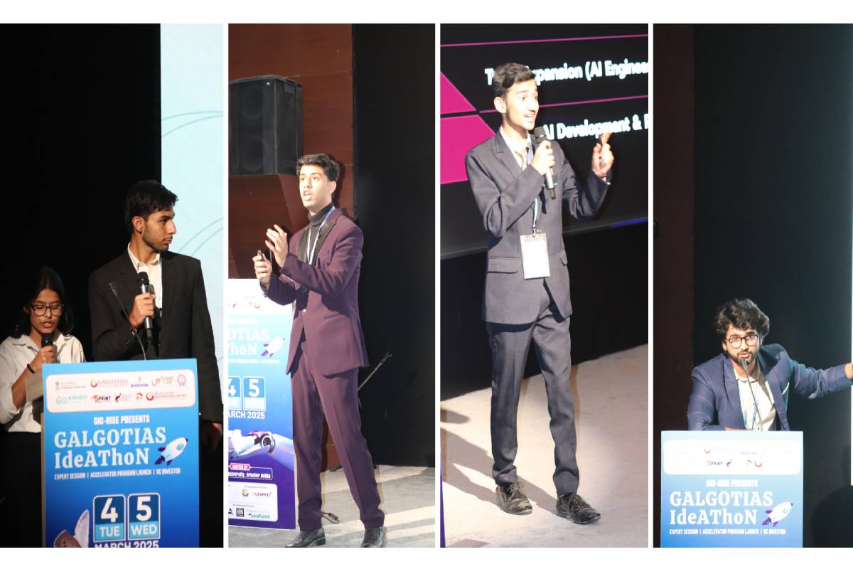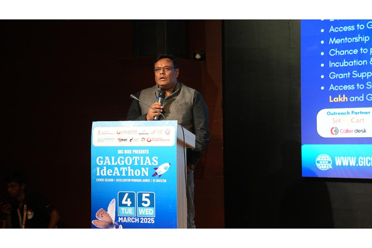 Galgotias University, March 4-5, 2025 – The Galgotias Ideathon, organized by the Galgotias Incubation Centre For Research Innovation Startup & Entrepreneurs (GICRISE), concluded on a high note, solidifying its reputation as a premier platform for fostering innovation, entrepreneurship, and startup culture among young minds. Under the visionary leadership of Hon’ble Chancellor Mr. Suneel Galgotia and Hon’ble CEO Dr. Dhruv Galgotia, the event brought together aspiring entrepreneurs, industry leaders, investors, and mentors to drive transformative ideas forward.