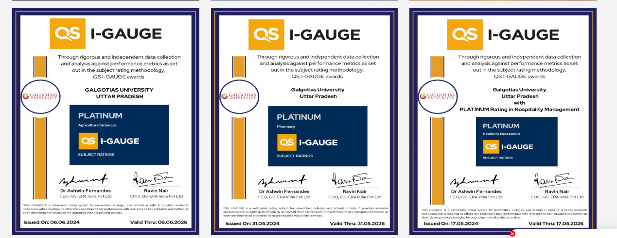 Galgotias University has received QS I-Gauge Platinum Ratings in the following subject areas: