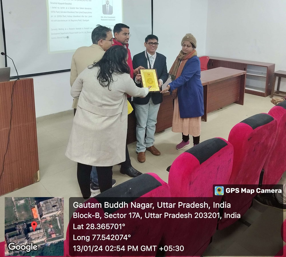 Dean Prof. Dr. SK. Abdul Rahaman, Dr. Amit Singh, Dr. Shaweta Sharma and Dr. Shikha Yadav presented mementos to esteemed Guest Speaker Dr. Atul Chaudhary.