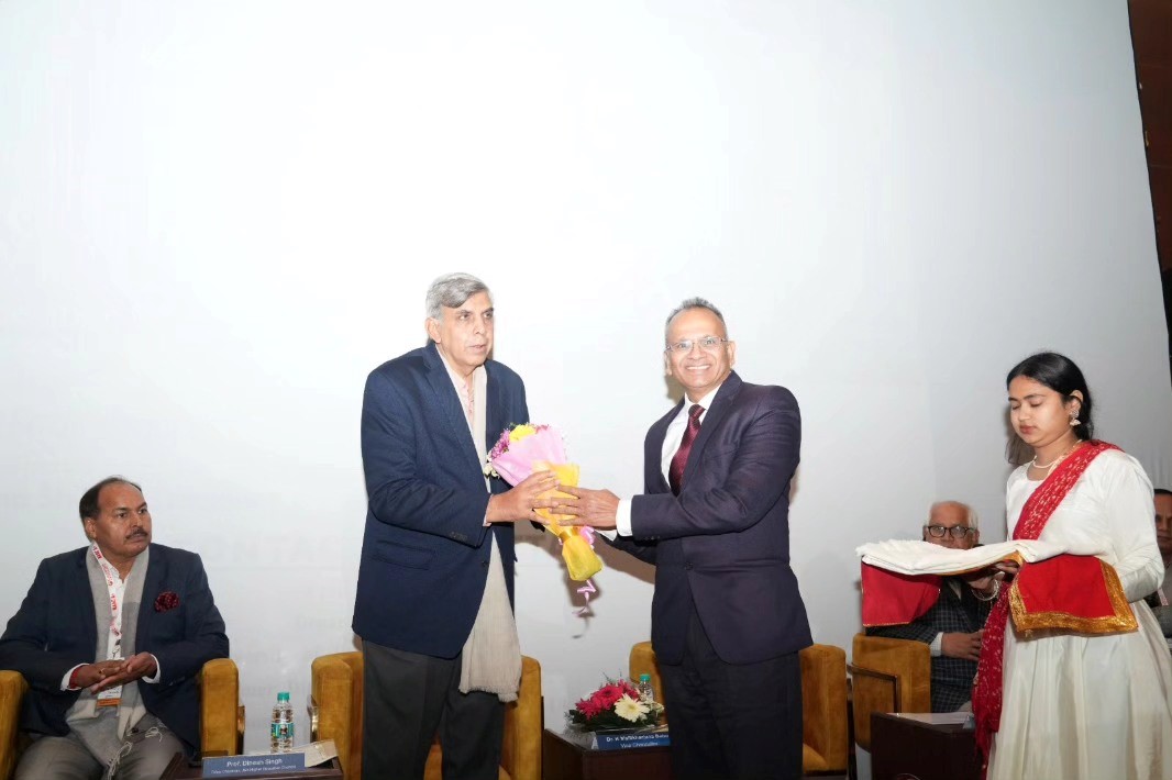 The Vice-Chancellor cordially greeted the Guest of Honour, Padam Shri Awardee Prof. Dr. Dinesh Singh, during the inaugural ceremony of the two-day national workshop.