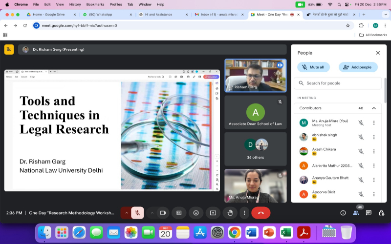 Centre for Post Graduate Legal Studies, Galgotias University, School of Law organised a one-day online “Research Methodology Workshop on Tools and Techniques in Legal Research” on December 20, 2024, for LL.M and PhD scholars. The event saw participation from 70 students and faculty members.