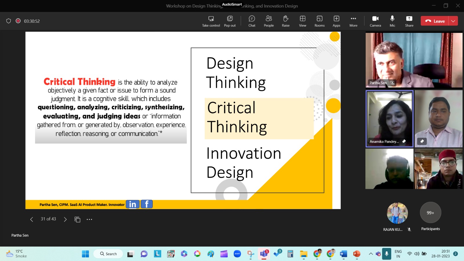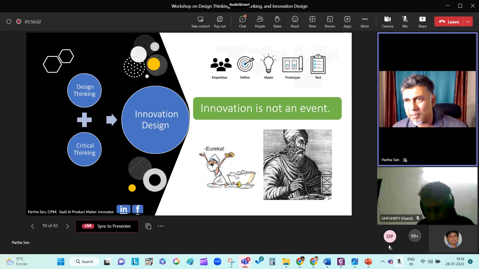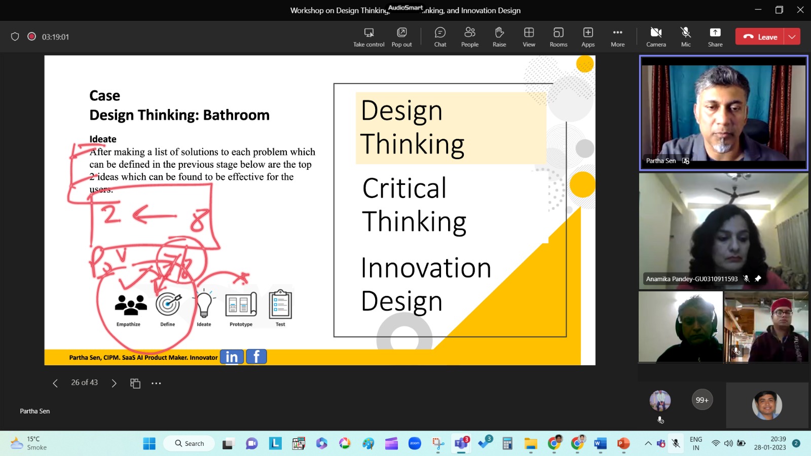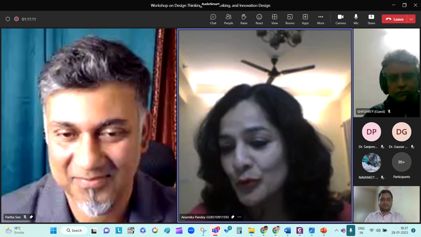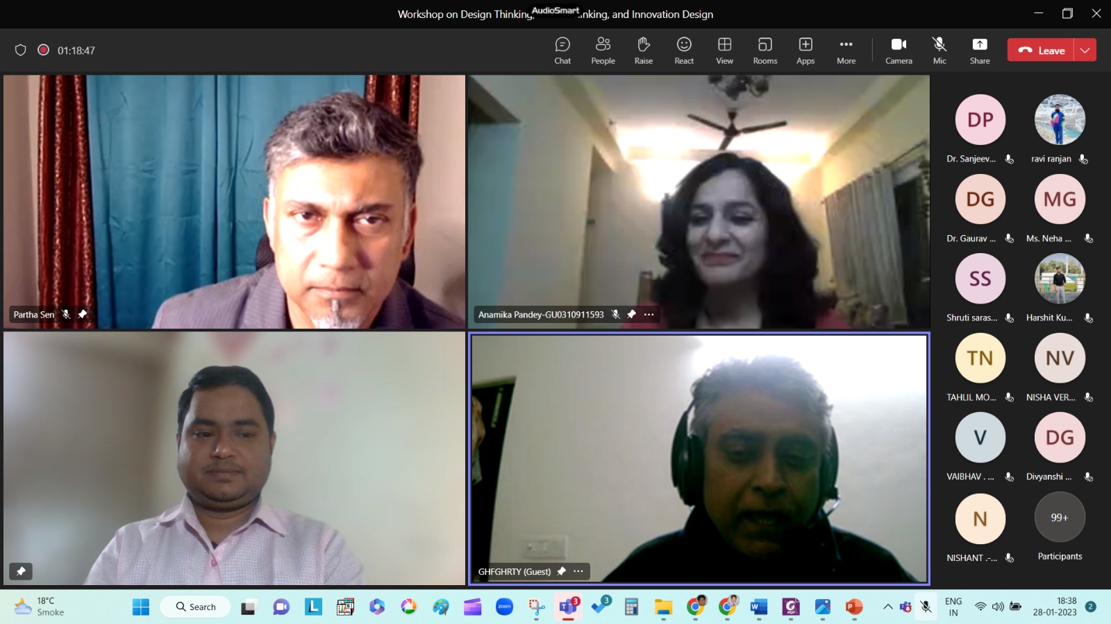 In the second Session, Prof. Sankar Mukherjee discussed the basics of Design Thinking, Critical thinking and Innovation Design and its importance.