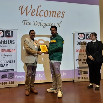Collaboration With Drishti IAS conducted a workshop on How to prepare for civil service examination. The seminar fostered interactive discussions, enabling students to grasp complex concepts and clarify doubts. Drishti IAS experts provided valuable insights, study material recommendations, and exam-specific strategies, aiding aspiring candidates in their preparation journey. Attendees had the chance to interact with both the speakers and fellow aspirants, fostering a network for future collaborations and learning