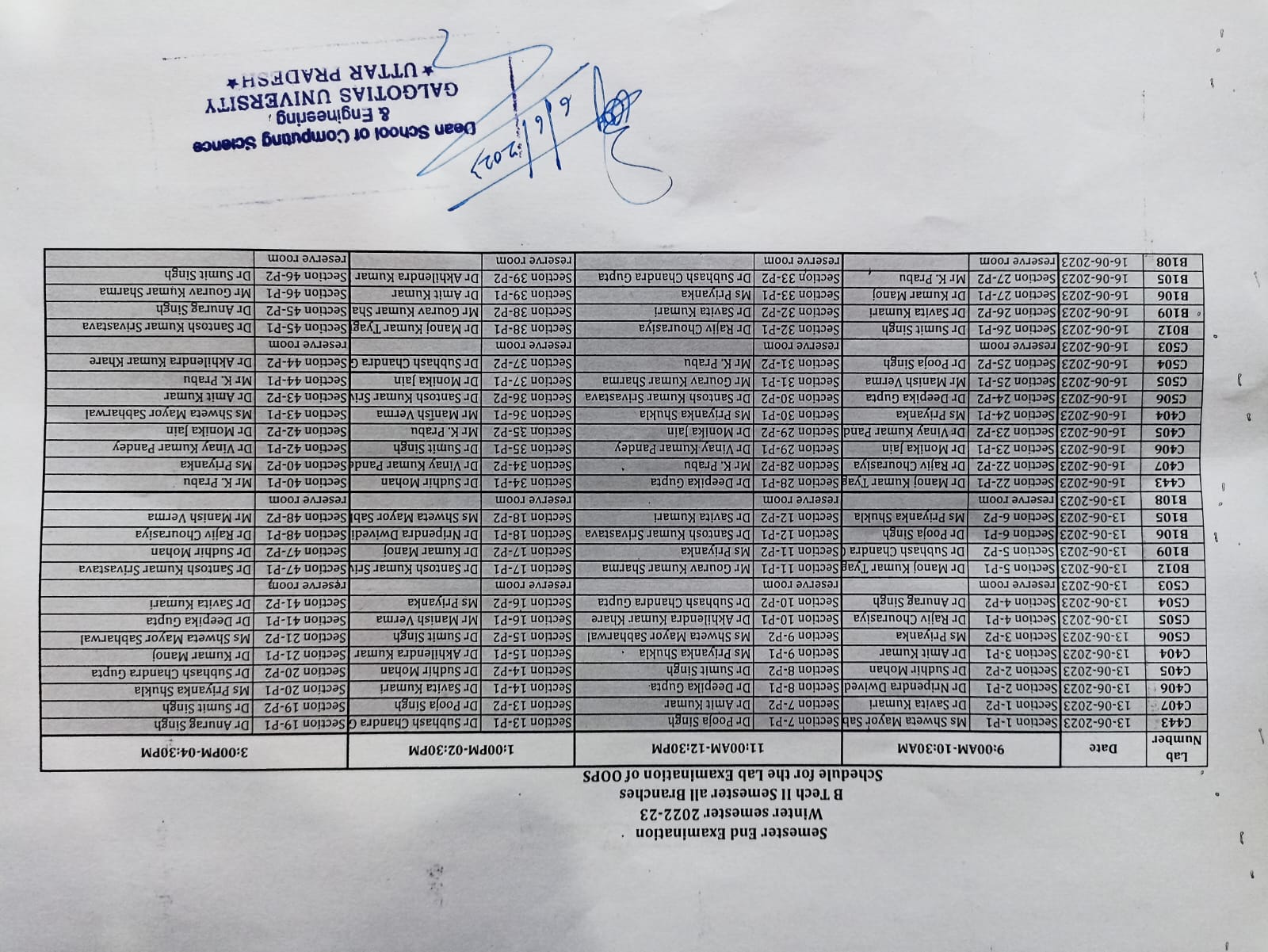 Datesheet - Semester End Examination (Non-Graduating Batch) Even Semesters - June 2023