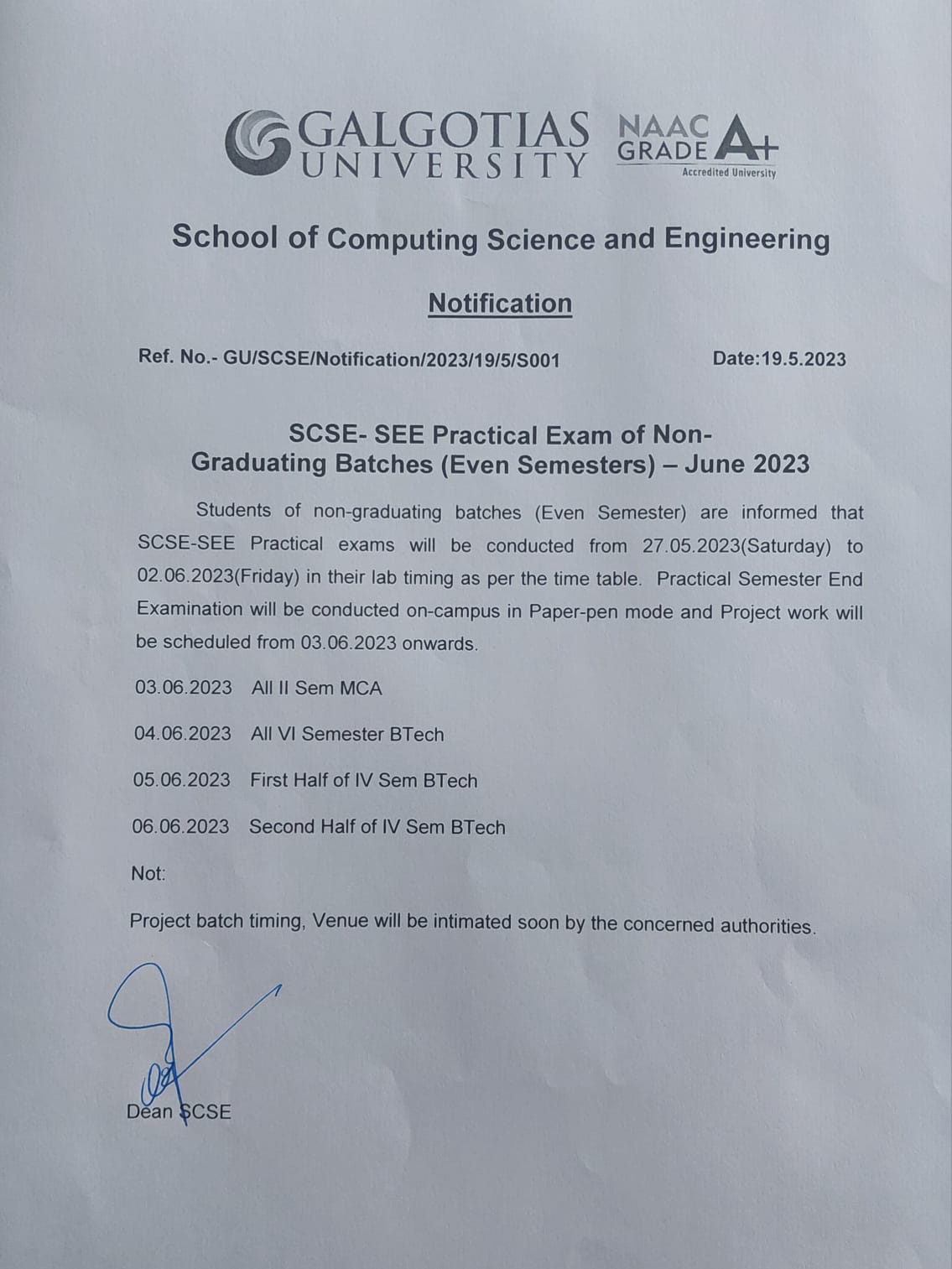 Notification – SCSE- SEE Practical Exam of Non-Graduating Batches (Even Semesters) – June 2023