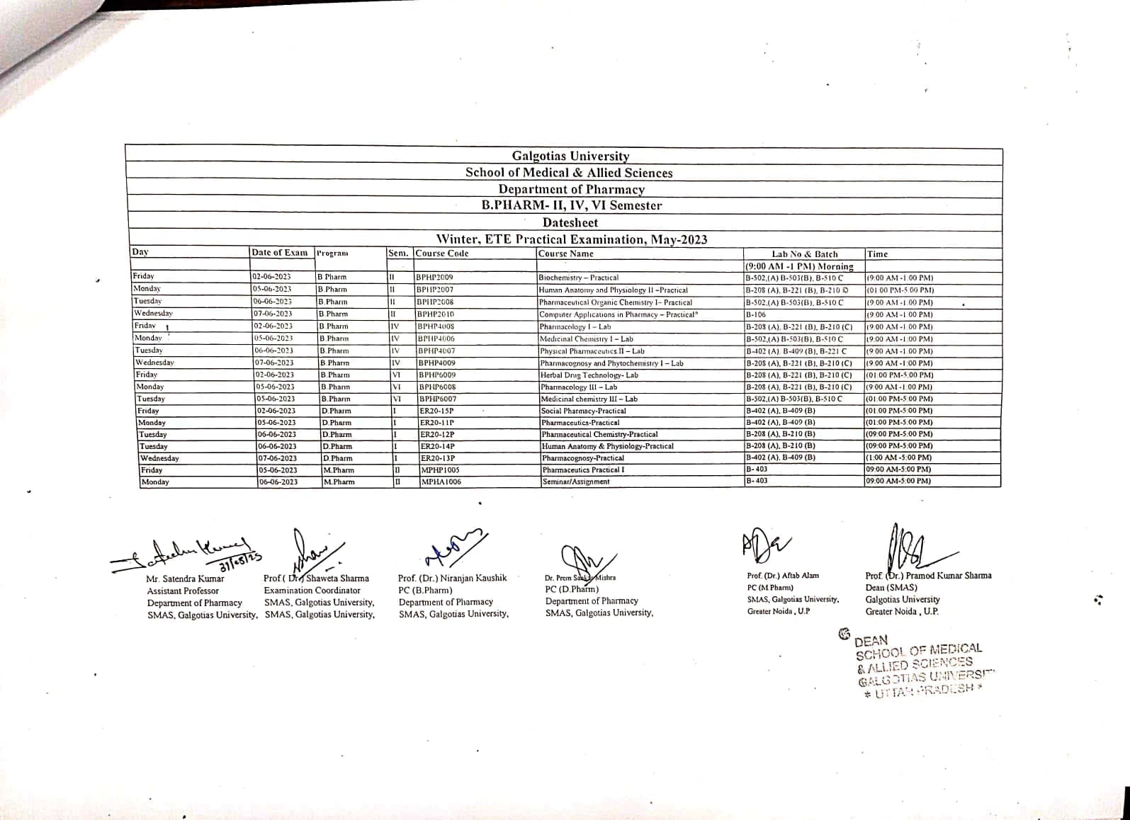 Summer term CAT I Examination Datesheet-Pharmacy (SMAS), July 2023