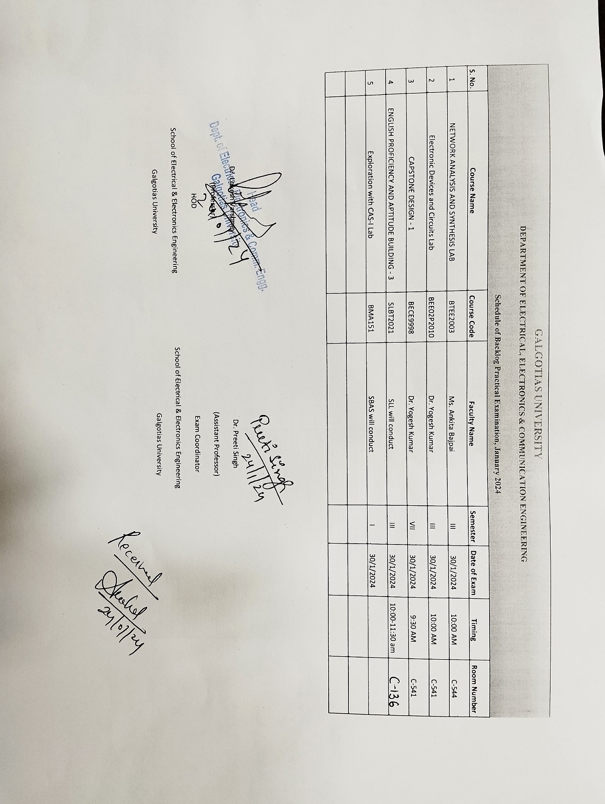 SCSE- Datesheet Backlog June 2023 Practical Examinations