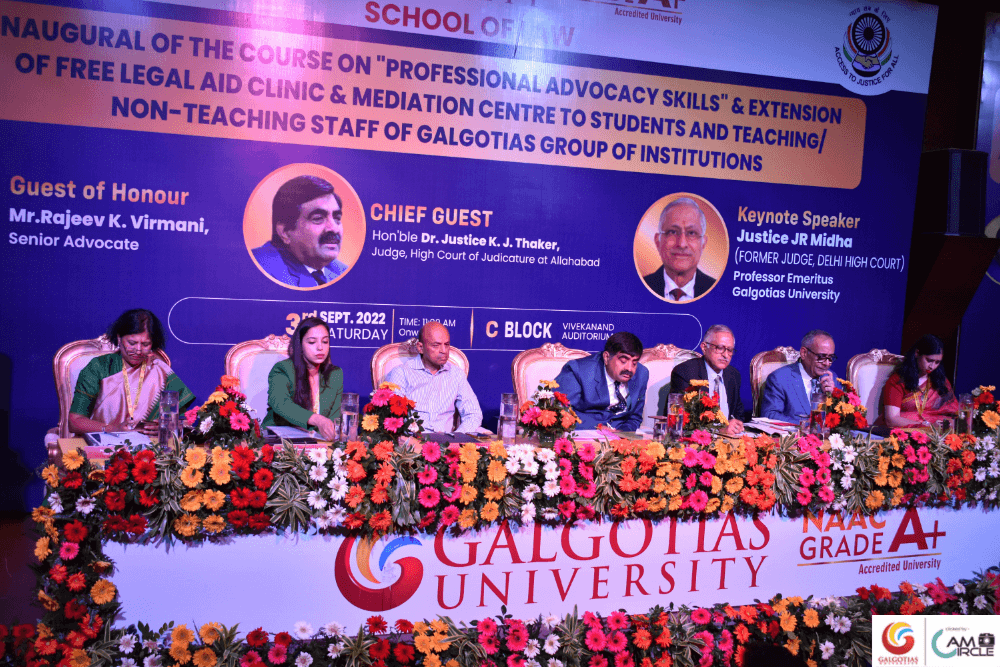 The School of Law organized a book launch event titled "MOTOR ACT" for a book published for the campus course. The event was held between 10 am to 3 pm on the college campus. The inauguration of the book was done by the judges of the High Court and Supreme Court, followed by guest speeches. The Chancellor of GU, Mr. Sunil Galgotia, the CEO of GU, Mr. Dhruv Galgotia, the Vice-Chancellor of GU, Dr. Preeti Bajaj, and the Dean of SOL, Namita, graced the occasion with their presence.