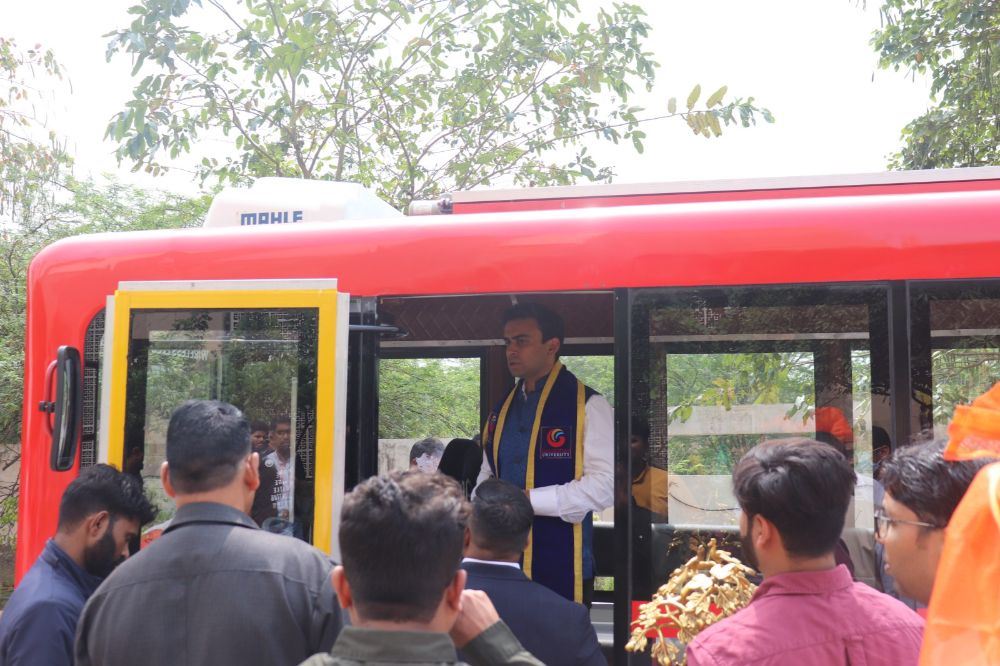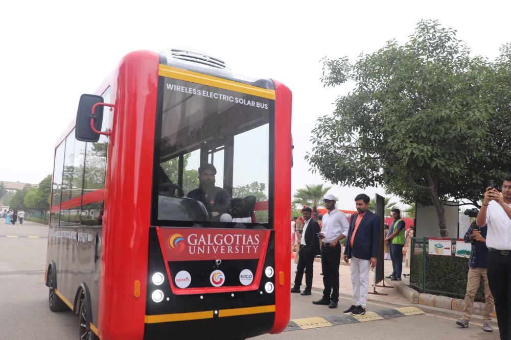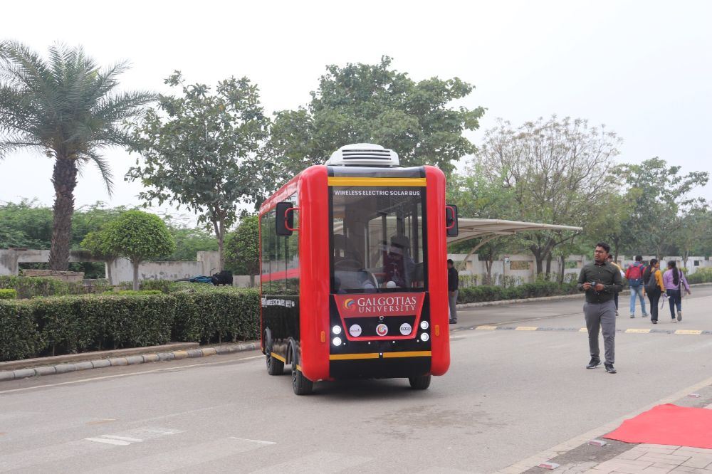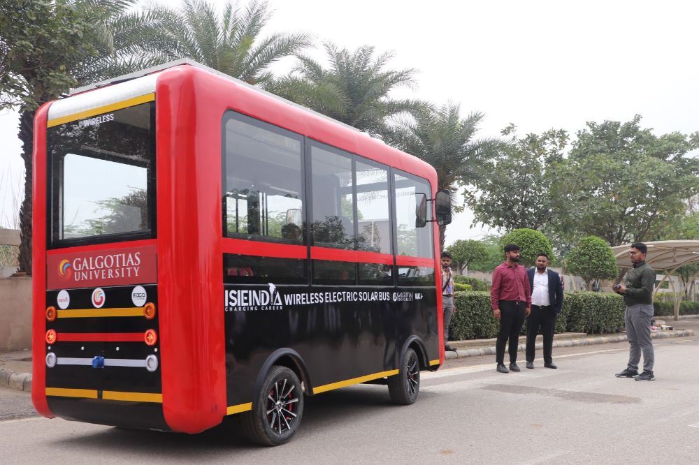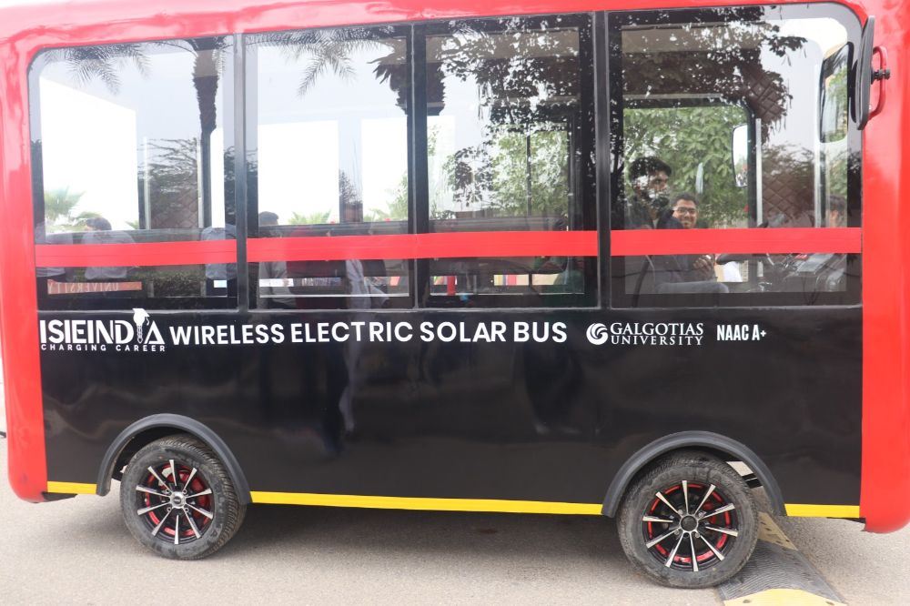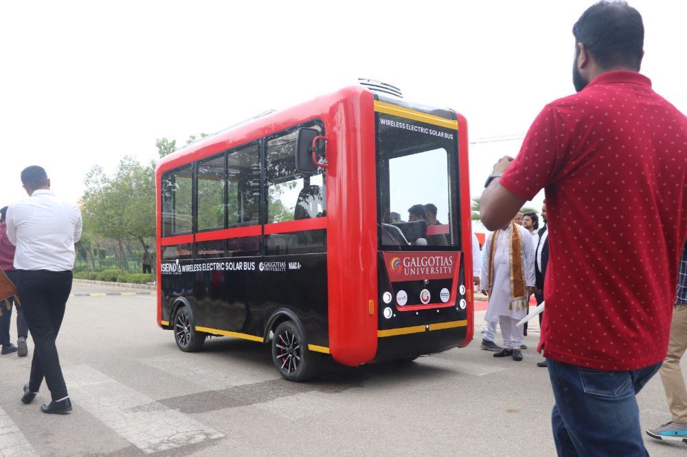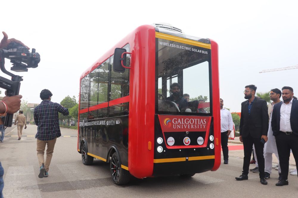 Galgotias University students have designed and developed an eco-friendly mode of transportation in the form of a wireless electric solar bus. This advanced vehicle utilizes cutting-edge Vehicle-to-Vehicle communication technology for autonomous operations. Additionally, its navigation system is supported by GPS, Bluetooth, ultra-sonic, and infra-red sensors, ensuring smooth and uninterrupted travels.